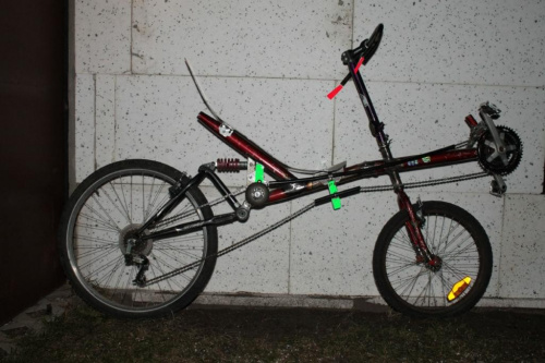 Witam wszystkich miłośników rowerów poziomych.  Po wielu przeróbkach i udoskonaleniach pierwszego roweru, nadszedł czas na wersję poprawiona i udoskonaloną. Poniższe zdjęcie przedstawia poziomkę nr 2, w której możliwe są jeszcze wszelkie zmiany poprawiające wygląd i właściwości jezdne. Proszę o konkretne komentarze i ewentualne sugestie bardziej doświadczonych kolegów.