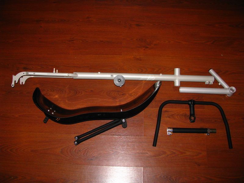 Rama obecnie jest złożona, i od czasu do czasu na niej jeżdżę, a oto wczorajsze zdjęcie kompletnego roweru (koła 28-559, fotelik S, krótki 80mm mostek):