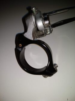 Przerzutka przednia Shimano FD 2303, u mnie pracowała z blatami 36/52. Mocowana na hak, w komplecie obejma na 34,9mm. Cena 15zł.