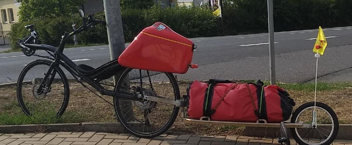 Poniższa przyczepka (z torbą żeglarską 90 litrów) wykonana metodami chałupniczymi przejechała bezproblemowo z Drezna do Budapesztu. Maks. prędkośc z bagażem 87km/h :-)