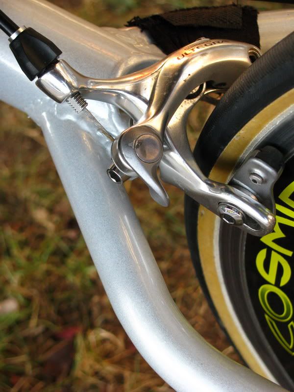 Kolejna sprawa to to ze, te hamulce są za słabe i nie hamują tylko spowalniają rower. Są znacznie słabsze niż shimano lub campa. Przy silnym naciśnięciu hamulca (nie w czasie jazdy) widać jak szczęki się uginają.