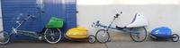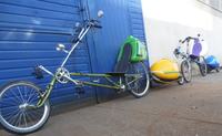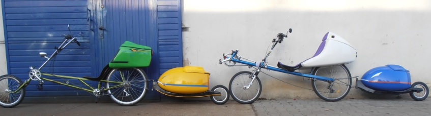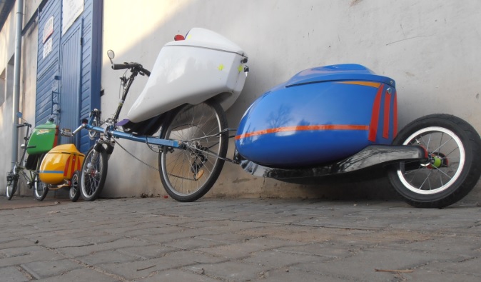 z przyczepką jednokołową zakupioną na allegro i też deczko dostosowaną do moich potrzeb, koło 20`` z piasta z prądnicą z wbudowanym mostkiem prostującym do ładowania akumulatorów w ogonie i rowerze, oryginalnie miała 16`` tylko że małe koło niezbyt sprawdza się w terenie, a z moimi dzieciakami(córka jeszcze w foteliku) potrafimy się wpakować w Dolinie Nadburzańskiej w różne trudno dostępne miejsca.