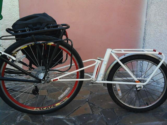 To jak dodatkowe koło za rowerem z miejscem na sakwy. male i lekkie.