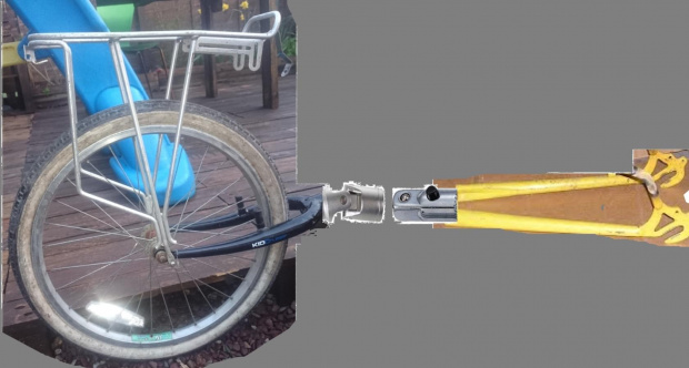 To by się nadało na zrobienie ruchomego połączenia między rowerem a przyczepką.