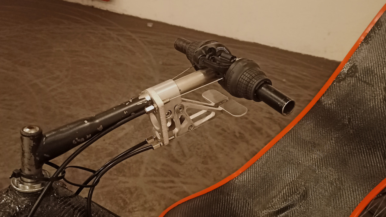 Zmień przedni hamulec - albo dospawaj mocowanie zacisku pod (mechaniczną) tarczówkę (np. Awid BB-7) albo przespawaj piwoty na drugą stronę, tak, żeby linka hamulca szła po lewej. Ostatecznie tektro ma hamulce V-brake, które mają wyjście linki na lewo, ale są krótsze niż normalne co może generować dziwne zachowanie z tymi klamkami. Tak czy siak - wywal linkę hamulca na lewo, będzie lepiej.