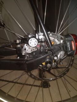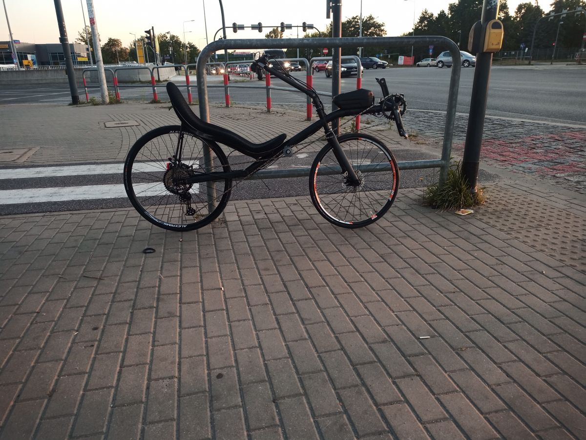 Co do mocowania hamulca - adapter dospawałem przed podpórką fotela, w kolejnym egzemplarzu już za. Na fotografii pierwszy rower: