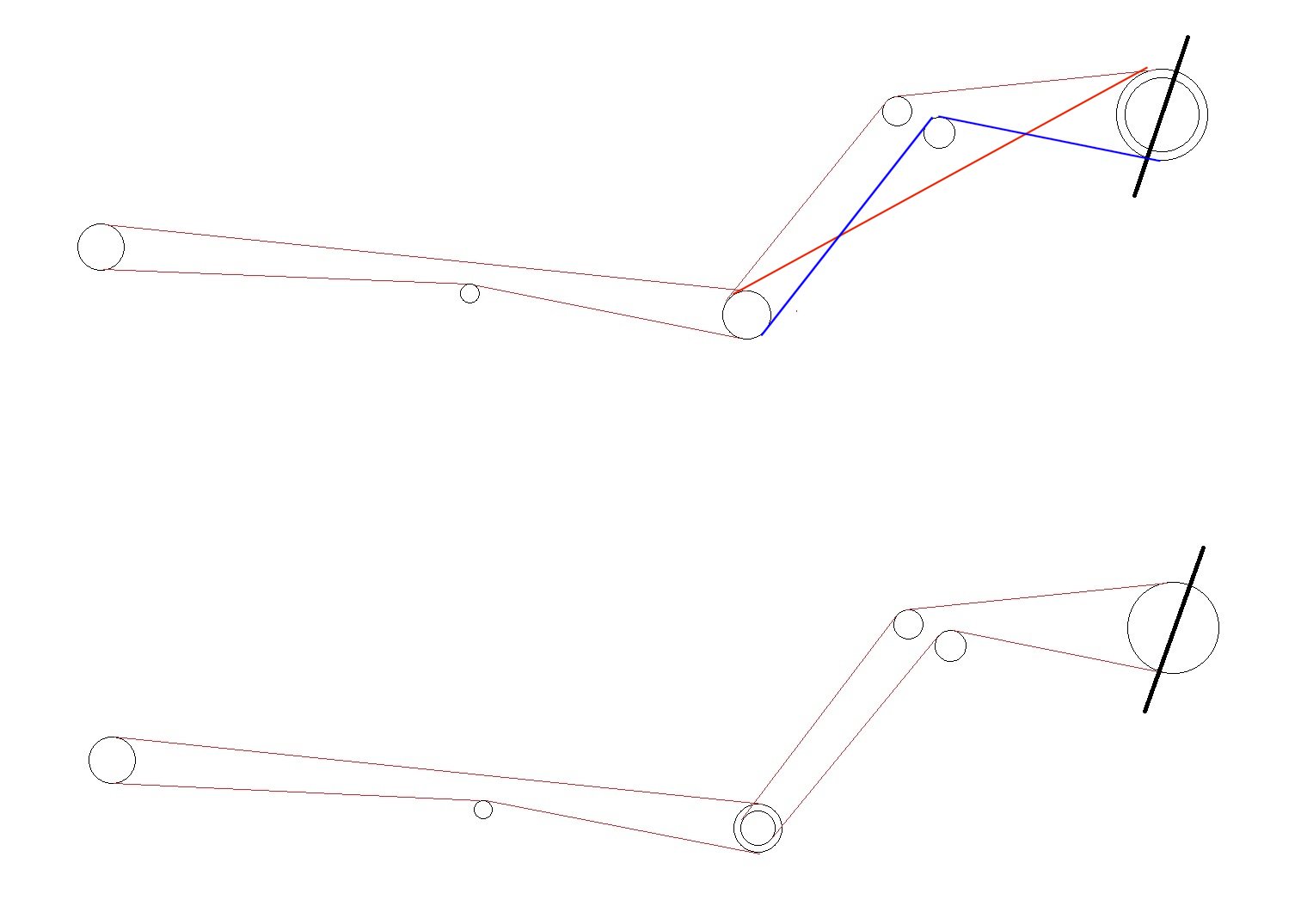 Ja bym inaczej poprowadził łańcuch - bez rolki podnoszącej górny łańcuch, o tak: