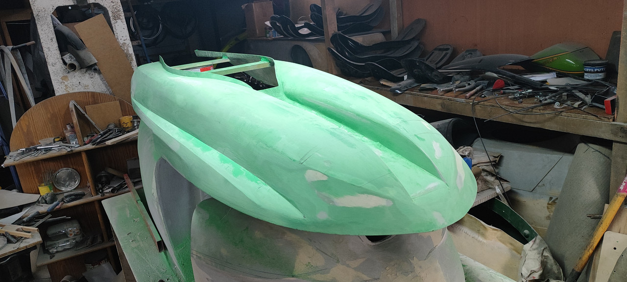 Przyszłym modelarzom i twórcom aerodynamicznych elementów do rowerów poziomych barwienia szpachlówki natryskowej na zielono nie polecam.