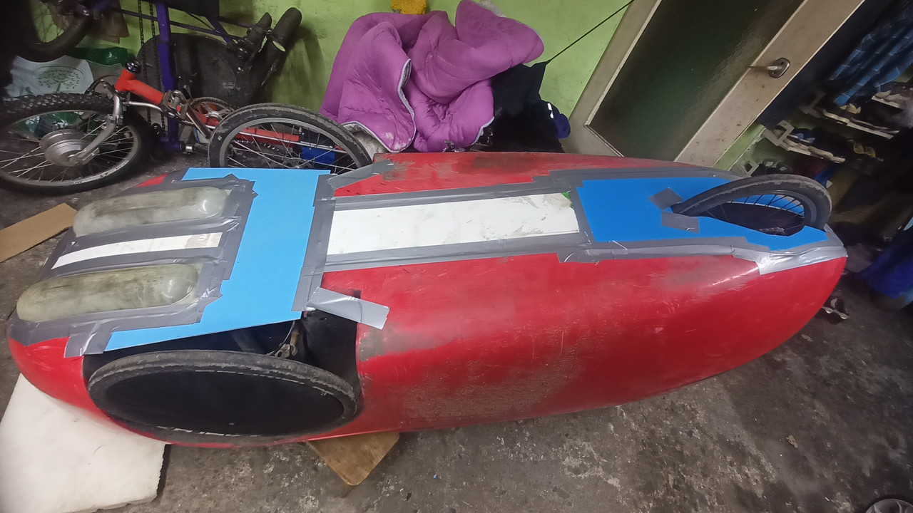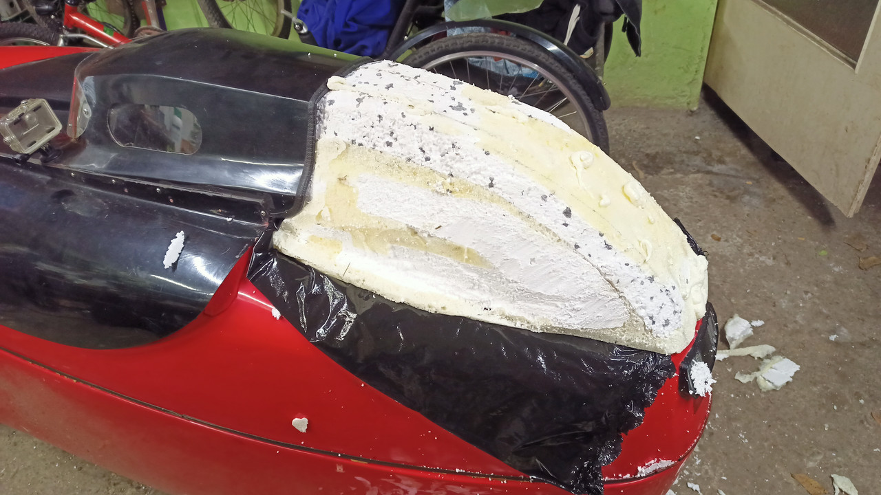 A skoro klapa była zdjęta, to mogłem odwrócić rower do góry kołami i zrobić pewne modyfikacje - zakleić wszystkie otwory którymi mogło wpadać powietrze.