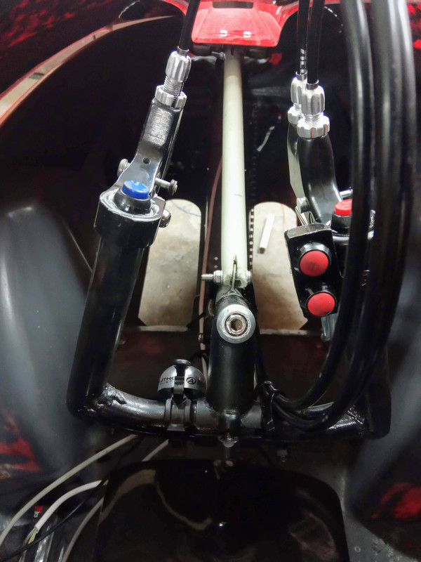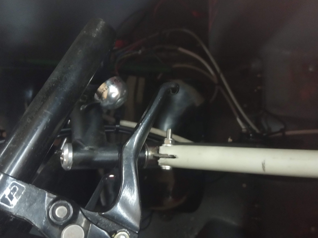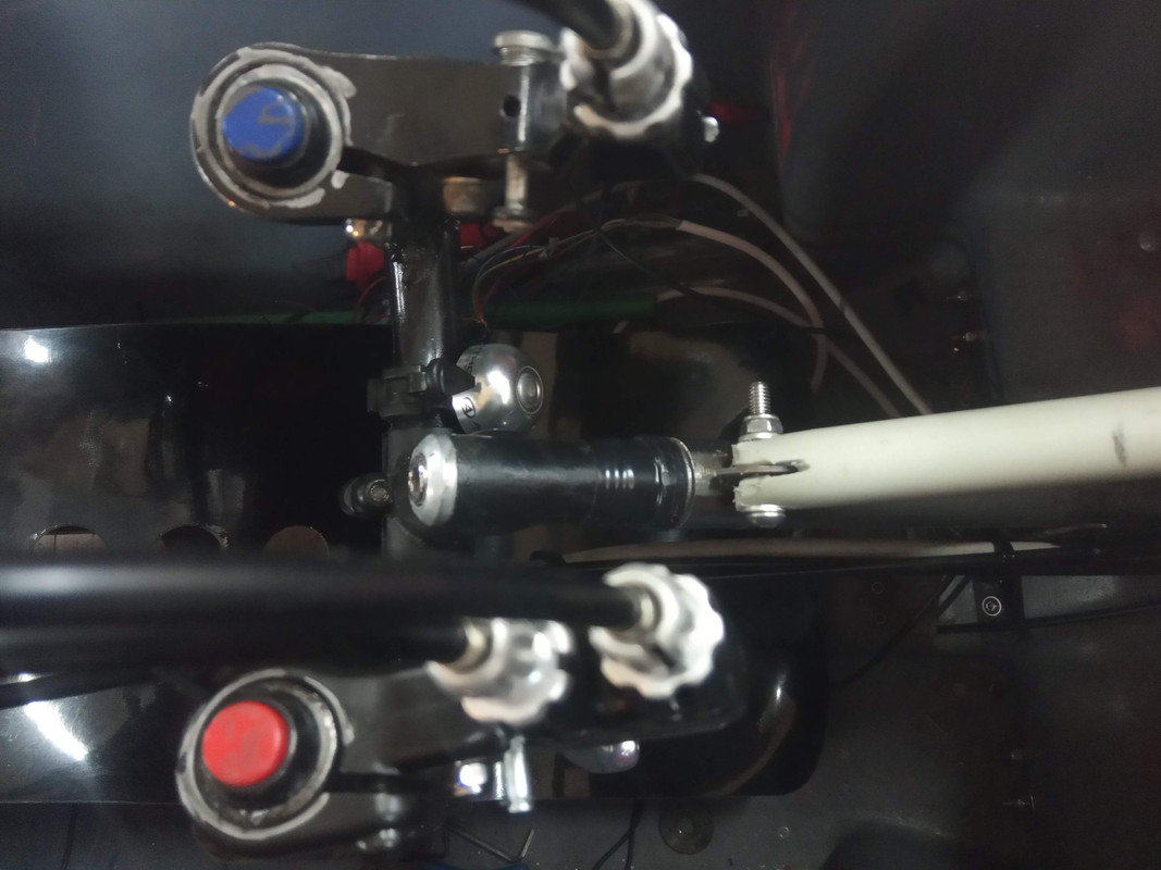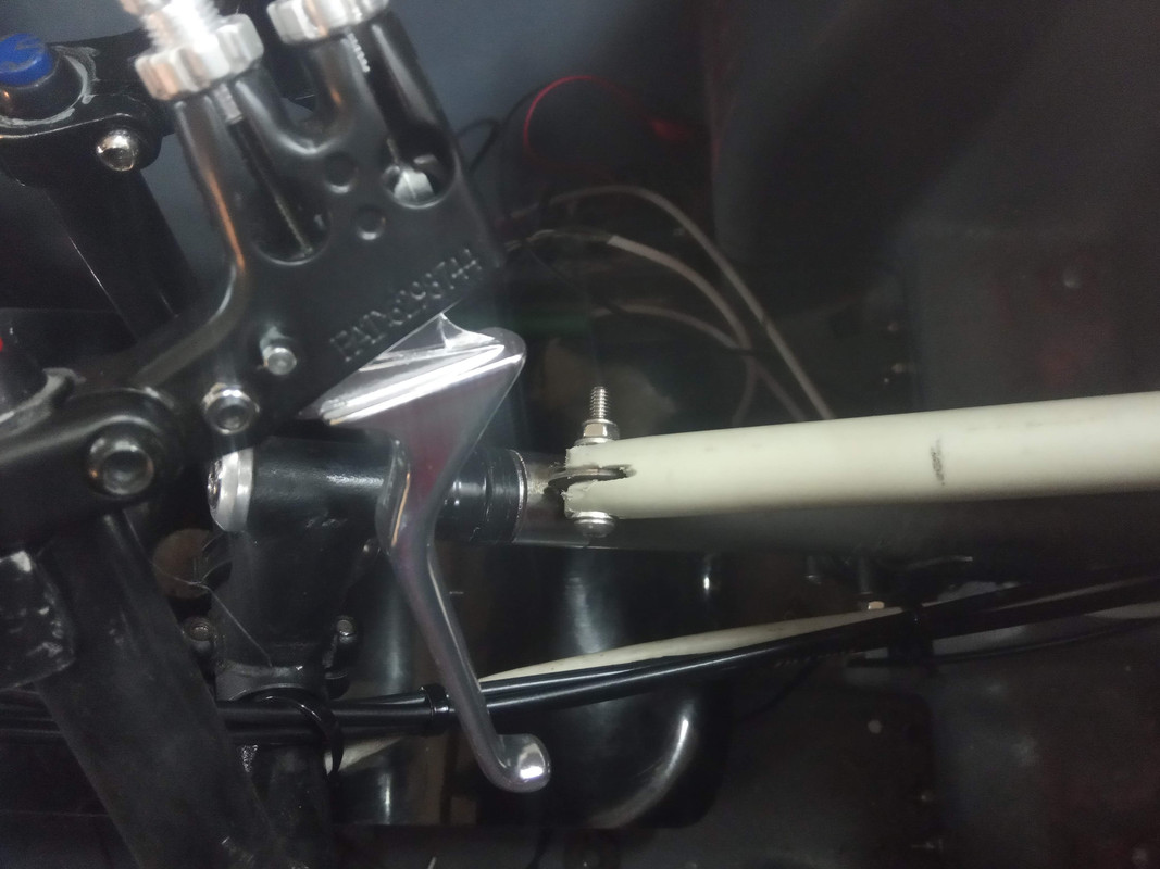 Mam nowy pomysł na otwieranie maski  który może zniweluje wady poprzednich. Rurka podnosząca klapę będzie przymocowana na obrotowej obejmie do rury kierownicy... Teraz muszę to jeszcze zrobić.
