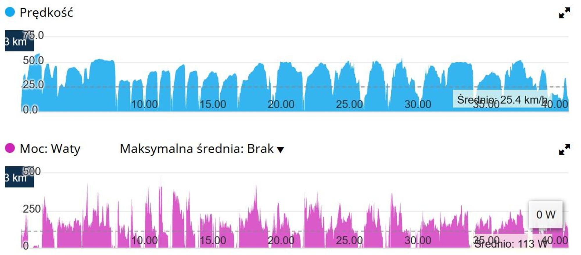 Kiedy odcinek jest krótki a na końcach ograniczony skrzyżowaniem, wzniesieniem to może się okazać, że nie uda nam się na nim pojechać z tą samą prędkością w obu kierunkach. Mam np. mnóstwo pomiarów z prędkości 40km/h ale te oscylacje są tak duże, że w zależności jakie wyniki wykorzystam to wychodzą duże różnice.