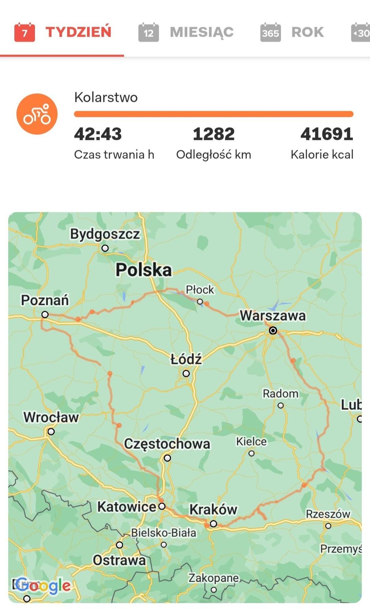 Z Kalisza do Krakowa  moja nawigacja pokazywała coś ponad 300km do tego zjazd na nocleg. W Kaliszu spędziłem sporą część dnia. Kiedy rozstaliśmy się z Maciejem zostało mi ok 80km do zrobienia. W sam raz żeby ostatni dzień spokojnie sobie przejechać. Kaliski etap to ok 100km.
