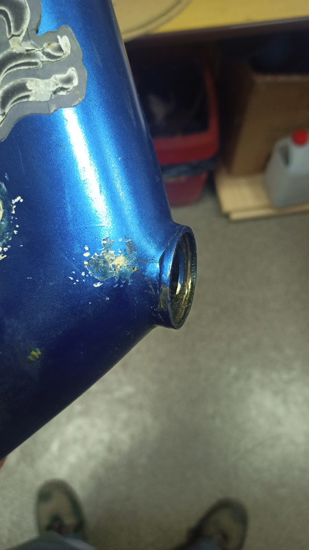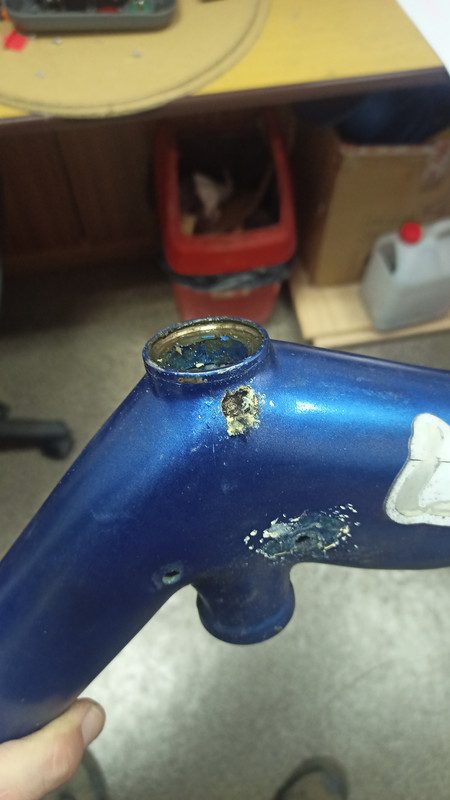 Podzespoły pójdą docelowo do wymiany, miejsca mocowania rolek napinających też będą zmienione.  Na razie muszę naprawić ramę. W okolicy głowki sterów jest pęknięcie. Muszę zeszlifować lakier, podkleić to ze środka i wzmocnić kilkoma warstwami laminatu z zewnątrz. Sugestie jak to zrobić będą mile widziane.