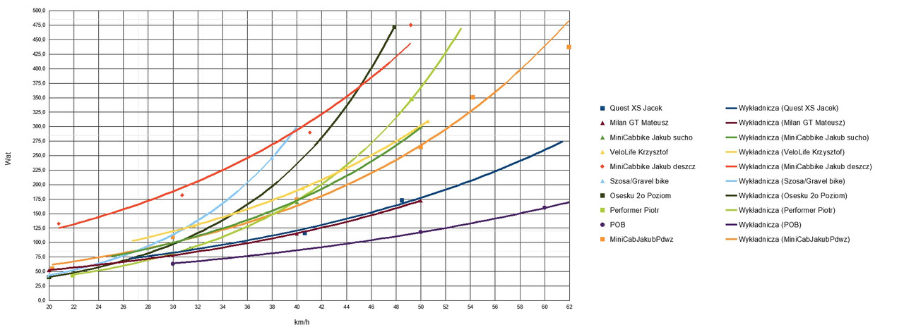 Moje velo to niebieska kreska. Patrzysz na pionową oś na swoją moc w trasie i na poziomej odczytujesz prędkość: