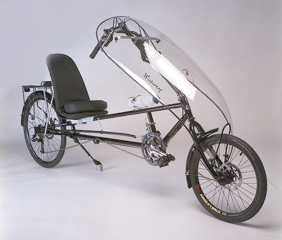 A ja mam coś co zadowoli nawet użytkowników szerokich i długich samochodów. Oto piękny, wąski i długi samochodo-rower. W sam raz żeby zacząć przygodę z rowerami poziomymi (ale musowo musiałoby być założone jakieś wspomaganie - np. silnikiem elektrycznym, albo nawet spalinowym):