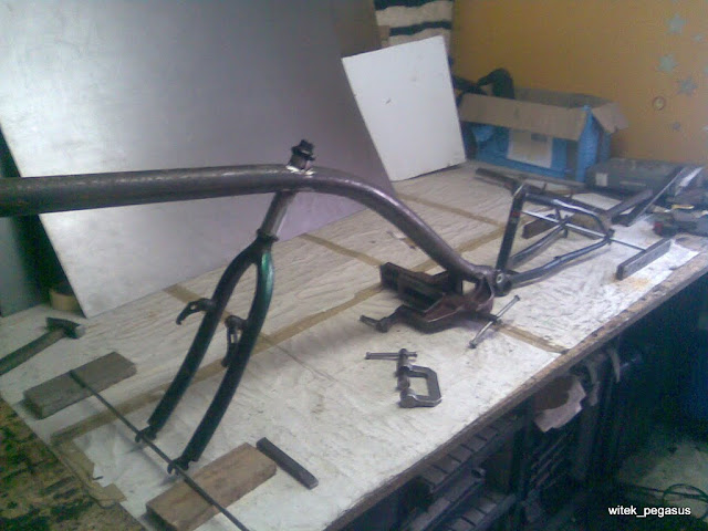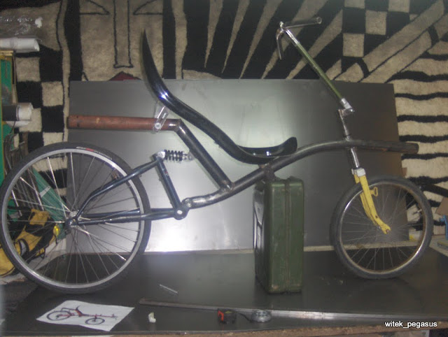 Pierwszy zrobiony własnoręcznie przy użyciu niektórych elementów z gotowych: widelec, wahacz, fotelik, itp