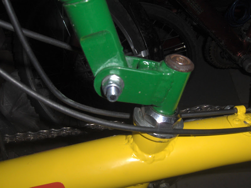 No właśnie poszedłem po linii najmniejszego oporu i zrobiłem wysuwany suport i regulowany fotelik. Skąd można wiedzieć w jakiej pozycji będzie się najwygodniej jeździć. Rower jest dla syna a on, syn nie rower, wciąż rośnie. Pochylana kierownica raczej do skomplikowanych nie należy. Jest jeszcze gwint na śrubkę regulacyjną, jak ktoś chciałby bardziej poziomo łapki trzymać.