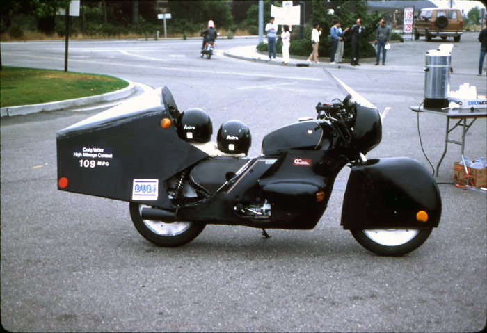 Potem w jego konstrukcji aerodynamika nie była już wysunięta tak bardzo na pierwszy plan, ale mimo wszystko w "klasycznym układzie" (bez specjalnych osłon) uwzględnił kilka ważnych szczegółów (np. kształt przedniego widelca, przepływ powietrza pod siedzeniem kierowcy, "aerodynamiczny zadupek"). Odlewał ... cylindry w piecu garncarskim żony, robił szkielet owiewki w garażu. Wykonał z włokna węglowego: koła, bak paliwa oraz ramy. Pierwszy motor z ramą z włókna węglowego... rozpadł się w trakcie jazdy próbnej (pękło przy główce ramy). Gość pozbierał się po tym jak ledwo tylko motor wyjechał, zrobił lekkie "wheelie" i strzeliła rama. Przemyślał gdzie popełnił i naprawił błędy. I jego motor wymiatał za na zawodach wszystko co tylko jeździło.