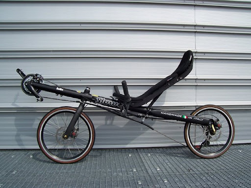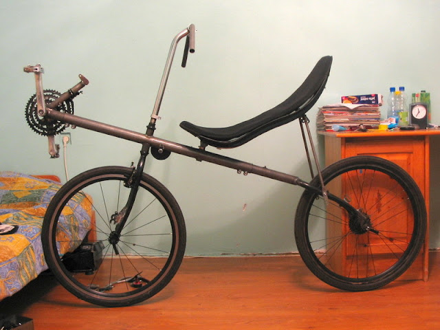 Edit: Alternatywny projekt, fotel dany wyżej pozwala uzyskać bardziej kompaktowe rozmiary roweru: