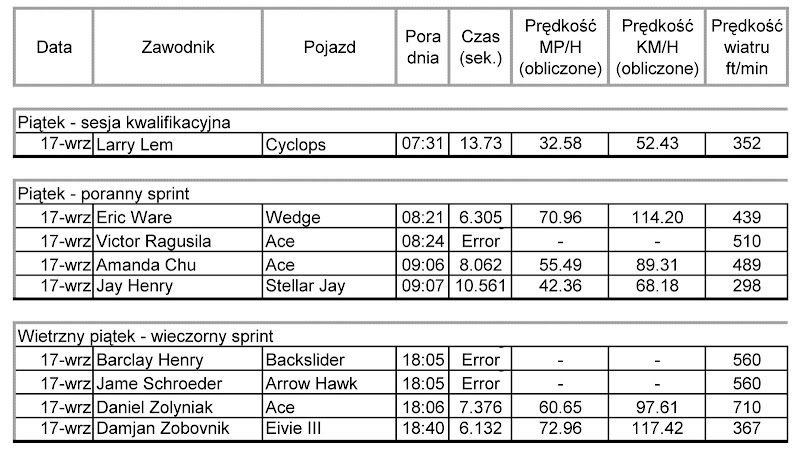 Ej to ja wg pierwszej tabelki bym się klasyfikował na 10-ej pozycji... 81,5... o ile liczy się wynik zza ciężarówki... (szkoda, że mi wtedy uciekła, ale przełożenia nie pozwoliły na więcej... :P)